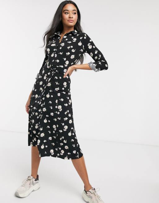 Oasis Floral Print Midi Shirt Dress In Black Asos